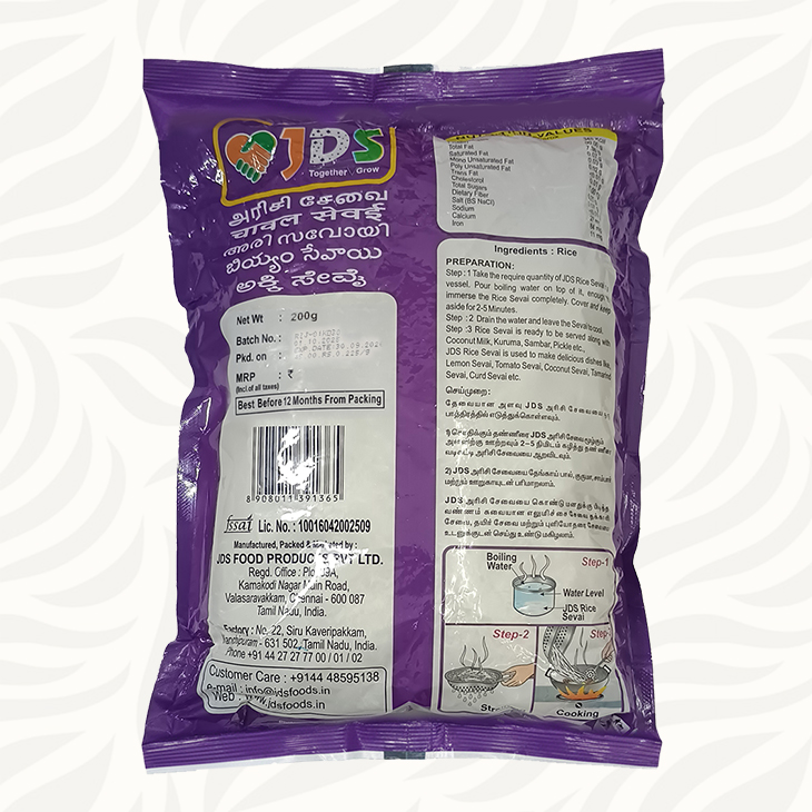 - Variety :Sevai / Idiyappam Sticks / Rice Noodles