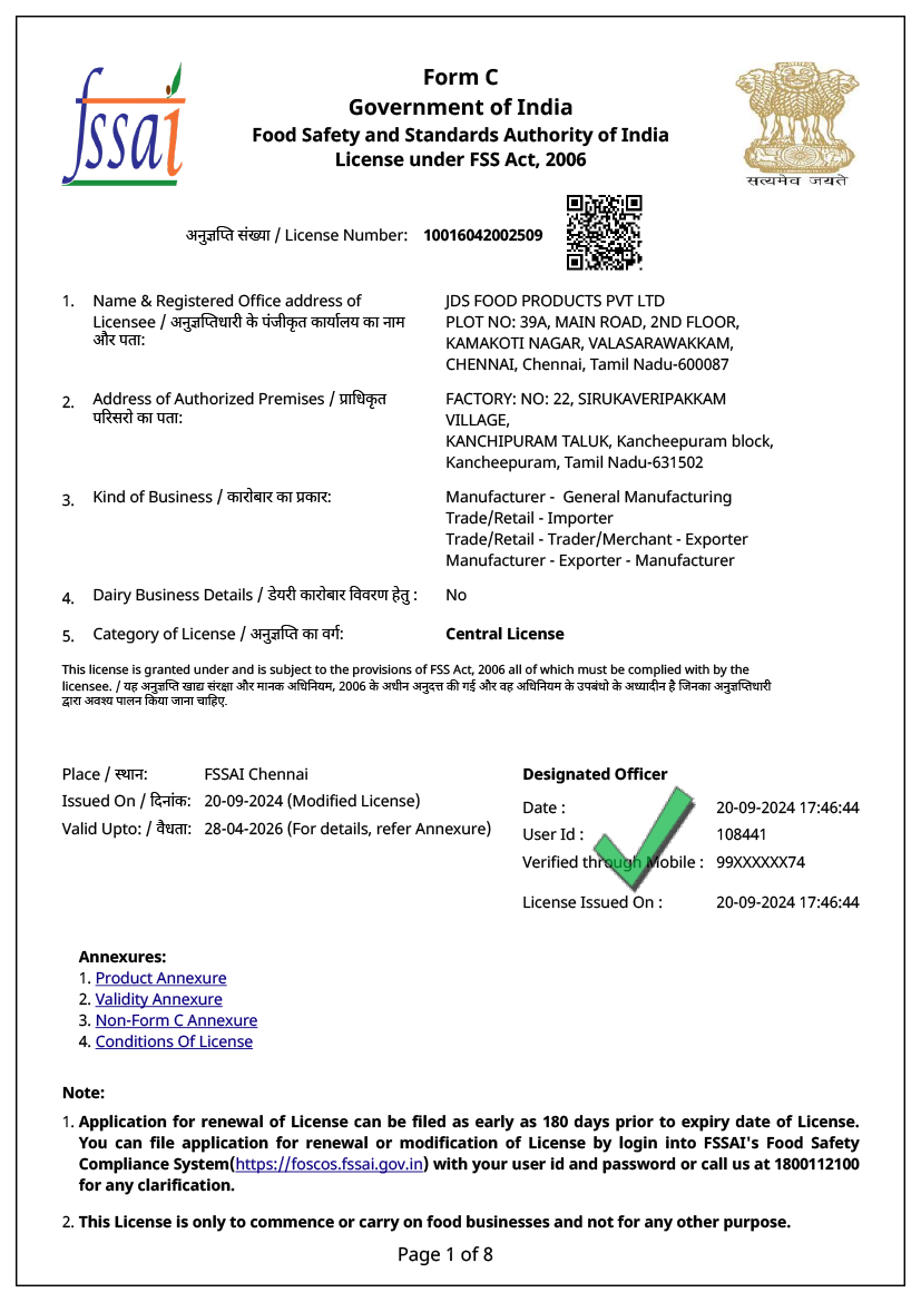 (JDS Food Products Pvt Ltd, India – Representative Office in the UAE)